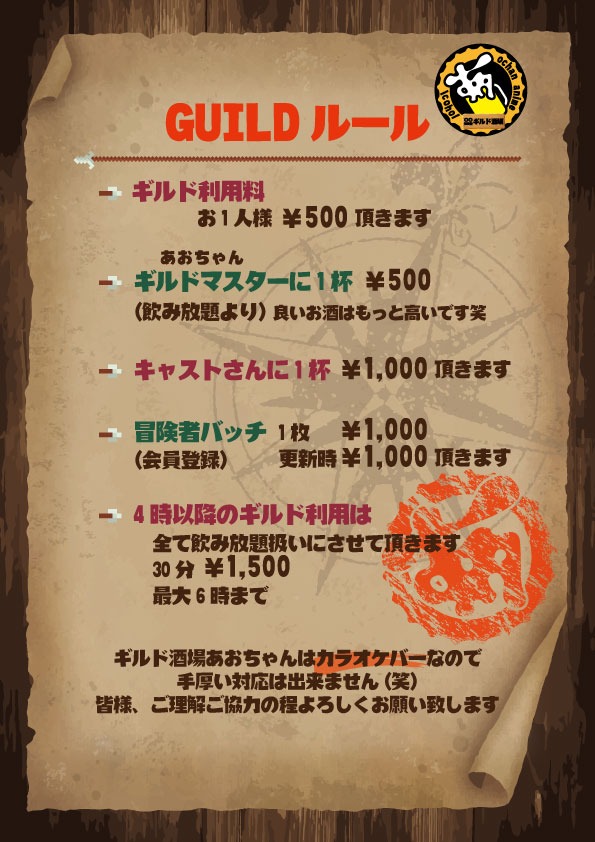 虜になった館林市周辺の冒険者たちが、今日も店灯りに誘われて“ギルド酒場あおちゃん”に吸い込まれていくのである───。